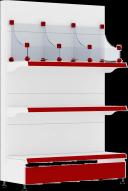 Перфорированные стенки — отличное дополнение к стеллажу для вывешивания продукции. В них можно вставлять крючки, которые бывают одинарными и двойными. Они идеально подходят для размещения бижутерии, сотовых и автомобильных аксессуаров.